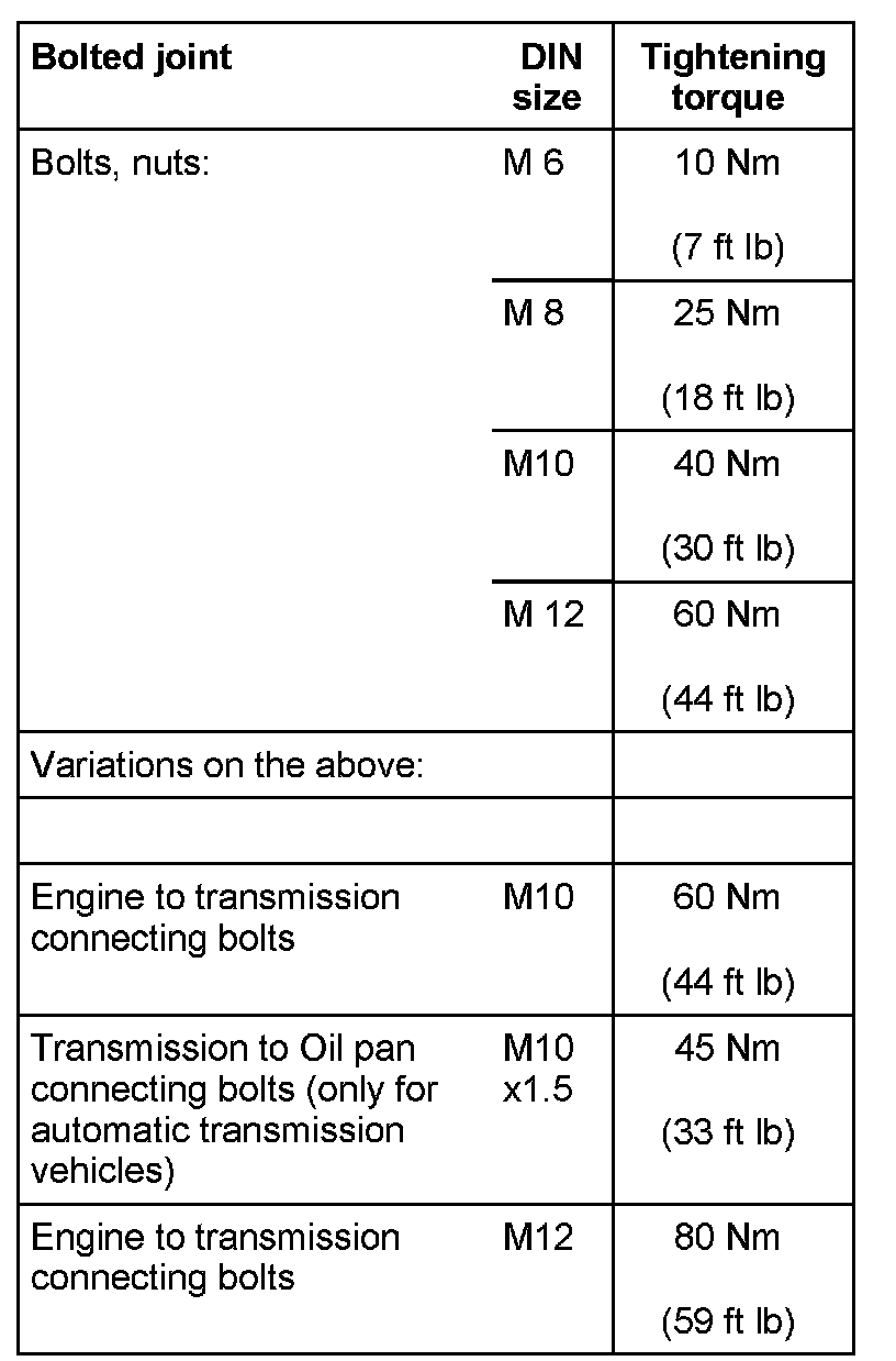 Coolant pump to block bolts 15 Nm (11 ft. lbs.)