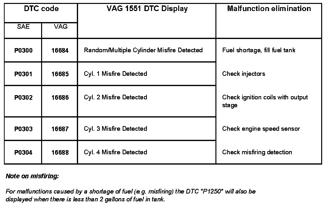 DTC P0300 - P0304:
