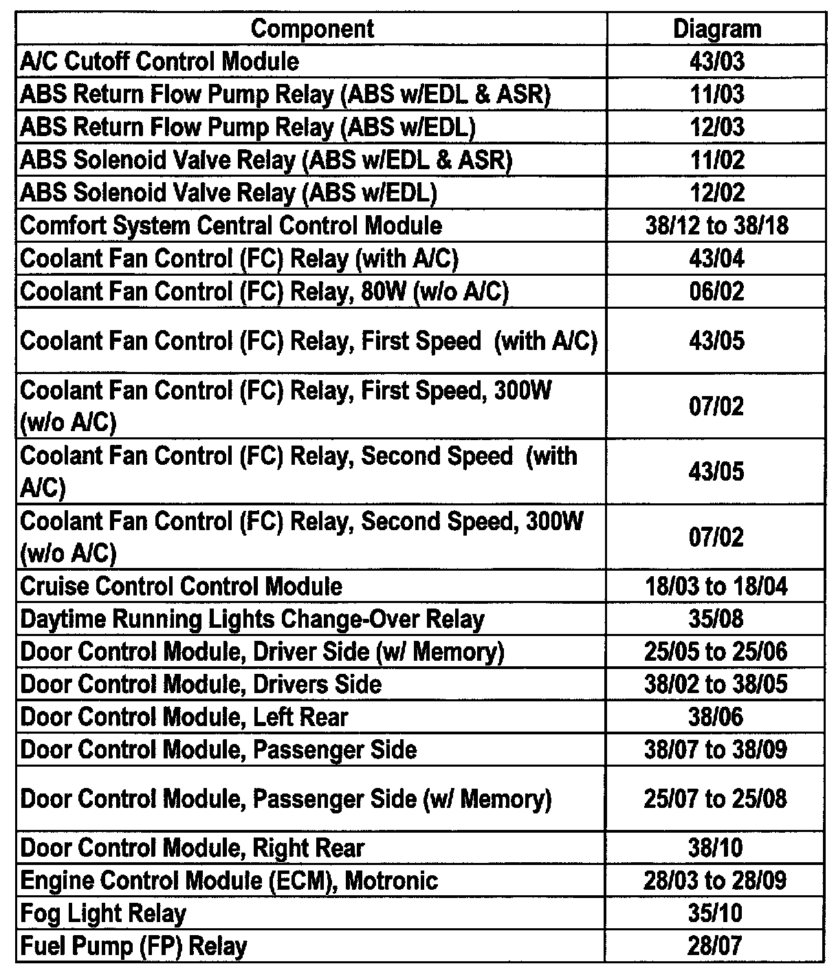 Master Diagram Index