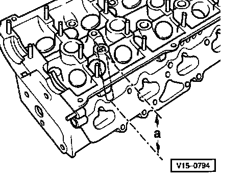 Note: The dimension for reworking is measured through the holes for the cylinder head bolts