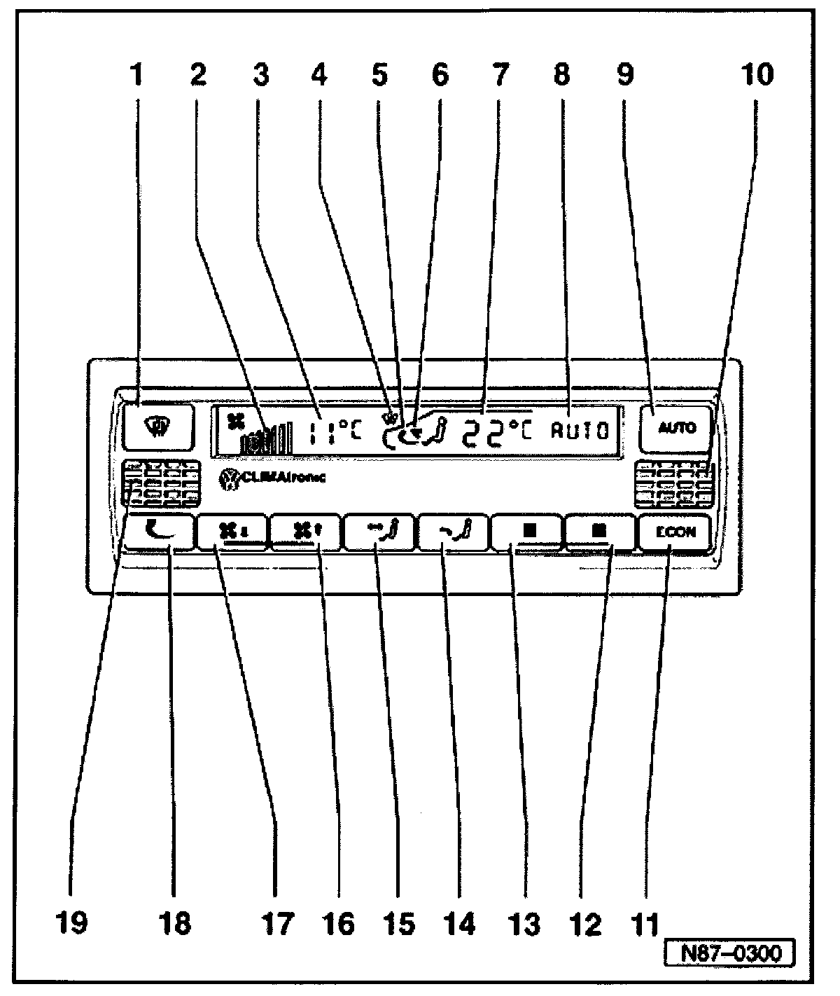 - In automatic mode, the Climatronic maintains the selected interior temperature automatically. With this setting, the air outlet temperature, blower speed and air distribution are controlled automatically.