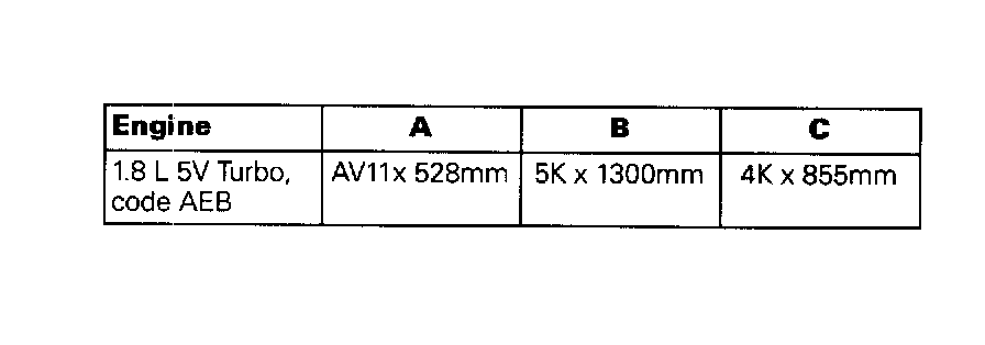 4 - V-belt - power steering vane pump and coolant pump. See table column A below.