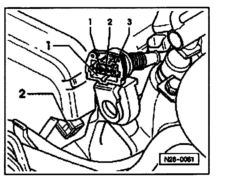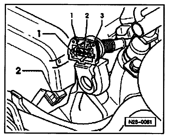 - Disconnect 3-pin harness connector -1- off Camshaft Position sensor -2-.