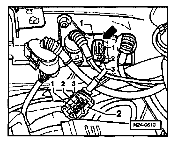 - Measure resistance between terminals 1 + 2 of connector -1-