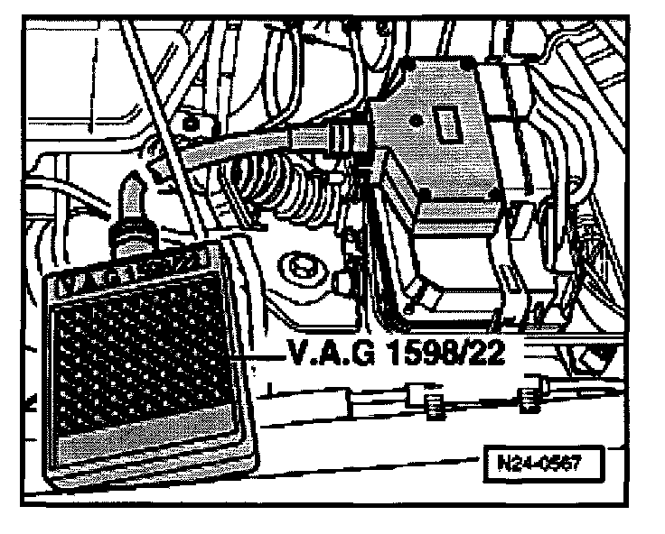 - Connect test box VAG 1598/22 to Engine Control Module wiring harness.