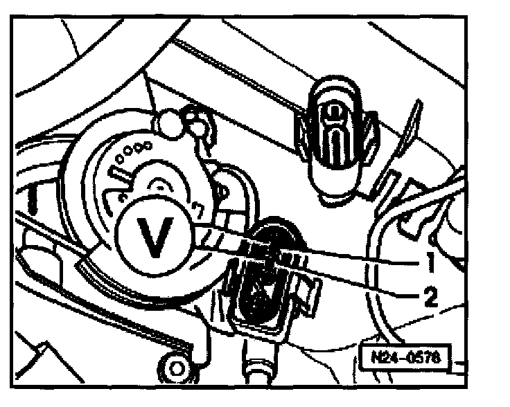 - Disconnect 4-pin harness connector (brown) from Oxygen sensor G39 (before Three Way Catalyst -1-).