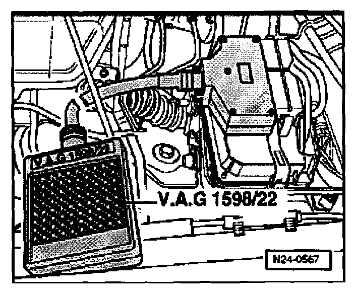 - Connect VAG 1598/22 Test Box to Control Module harness connector.