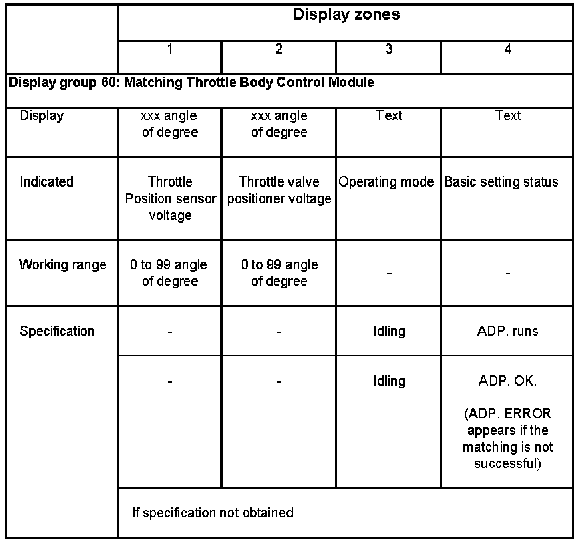 - Throttle valve angle less than 10 degree angle See Display group 03, display zone 3