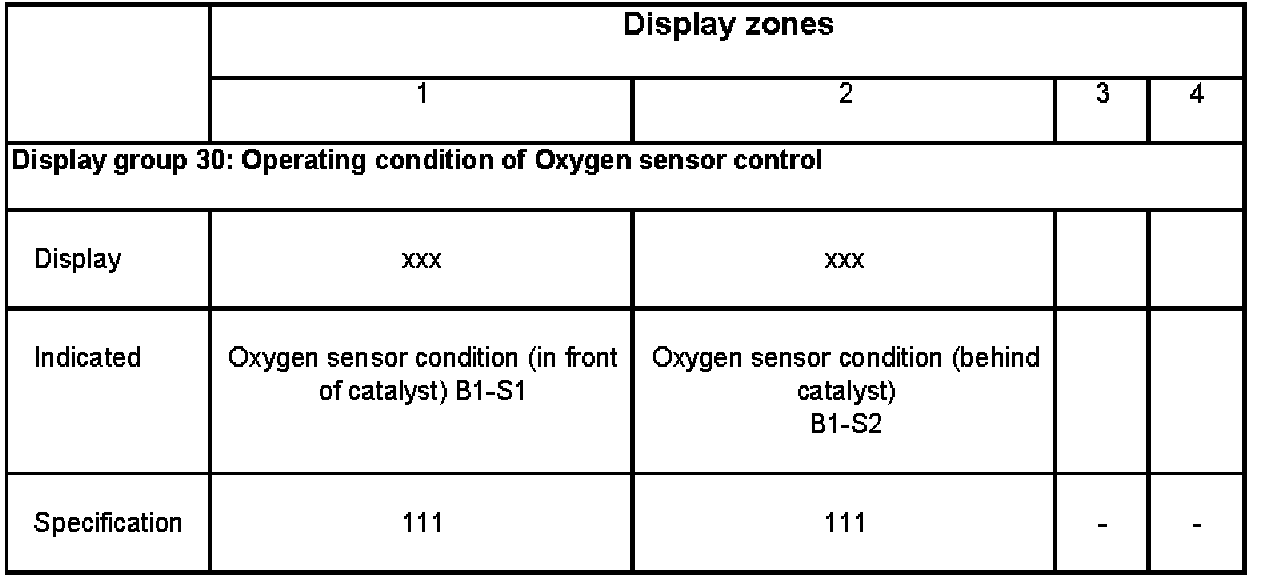 - Continue maintaining engine speed between 1800 and 2200 rpm until specification "B1-S1 OK" appears in display zone 4.