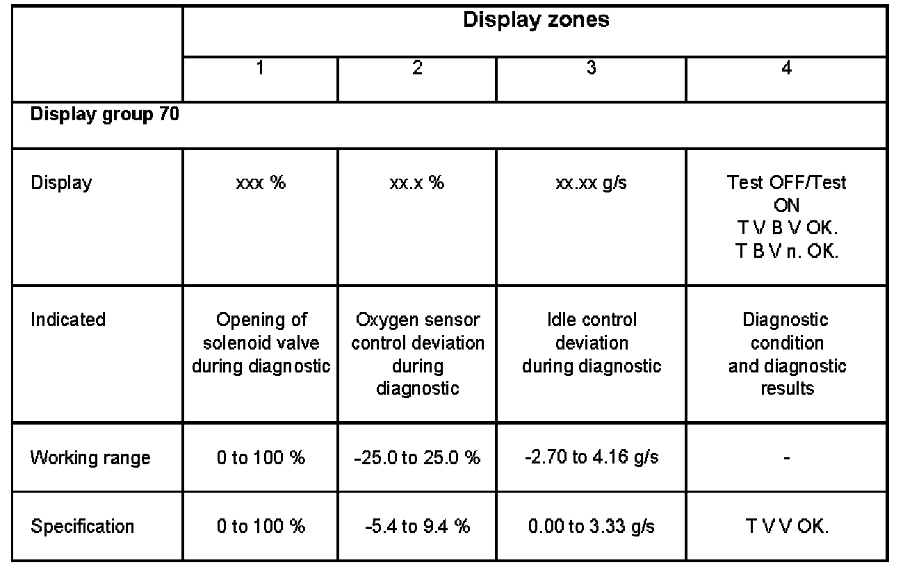 - Allow engine to continue idling until display "T B V OK." appears in display zone 4.
