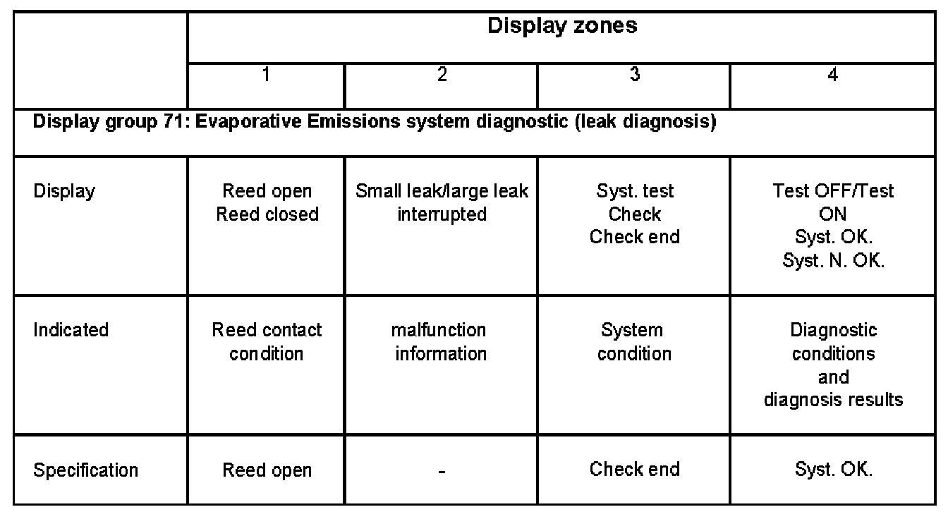 If diagnostic is initiated from ECM the display in zone 4 switches from "Test OFF" to "Test ON"