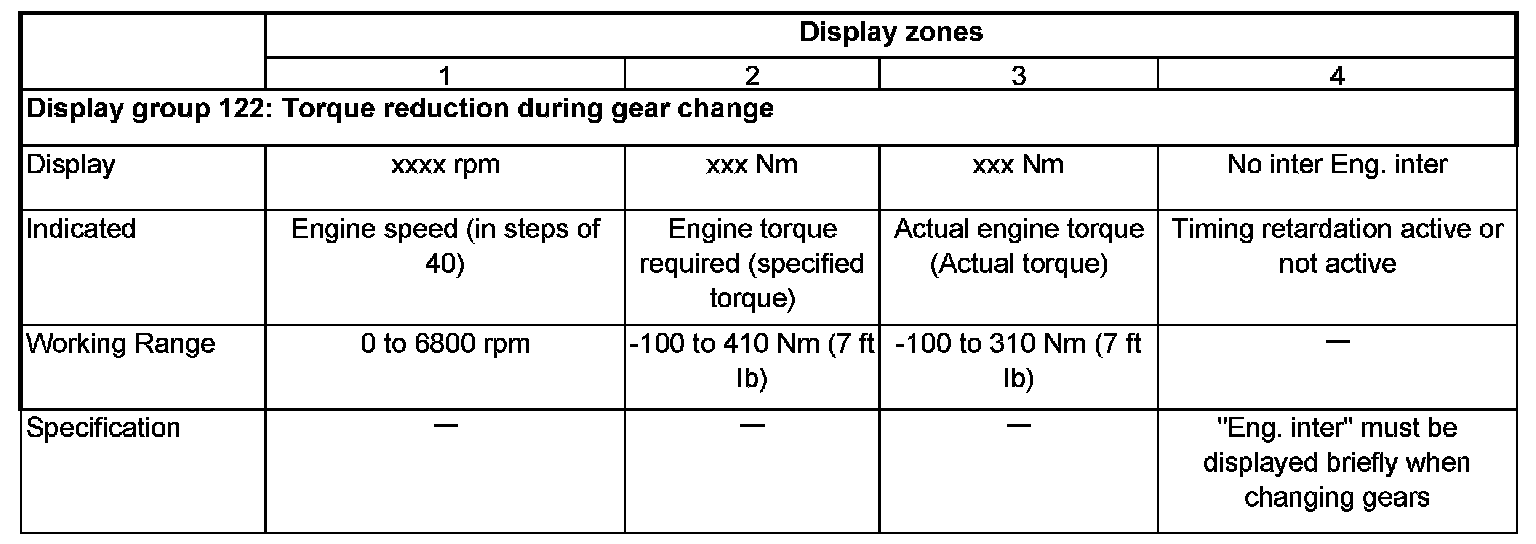NOTE: It is possible that several gear changes must be performed before the Display in Display zone 3 jumps to 0 because the signal from the automatic transmission is very brief