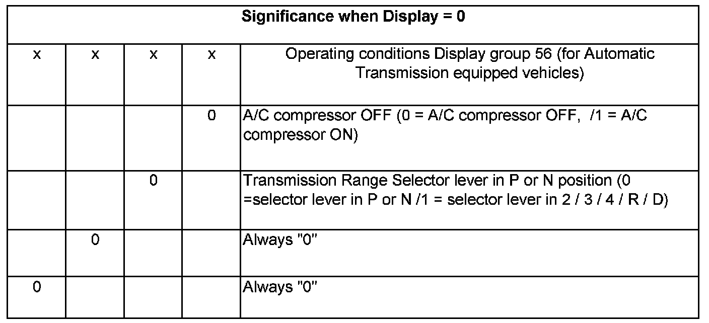 Significance of figures in 4 digit number block in Display zone 4, Display group 56