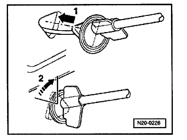 - Push throttle cable mounting into bulkhead and turn approx. 90° clockwise (arrow 2).