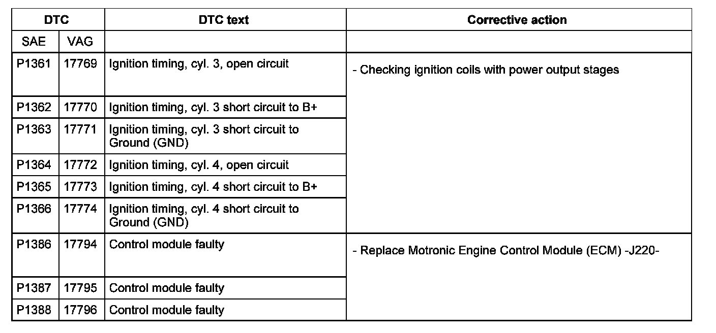 DTC P1361 - P1388: