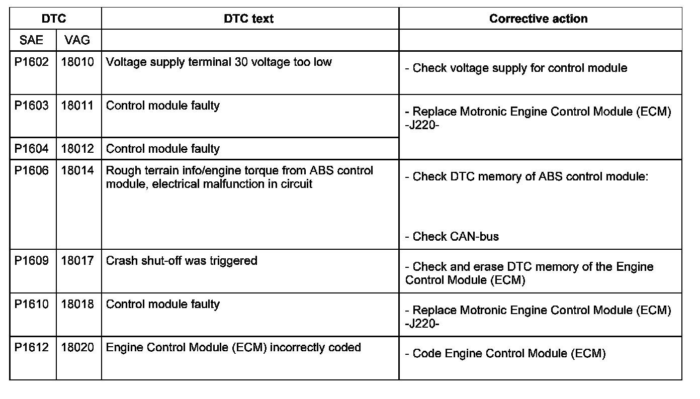 DTC P1602 - P1612: