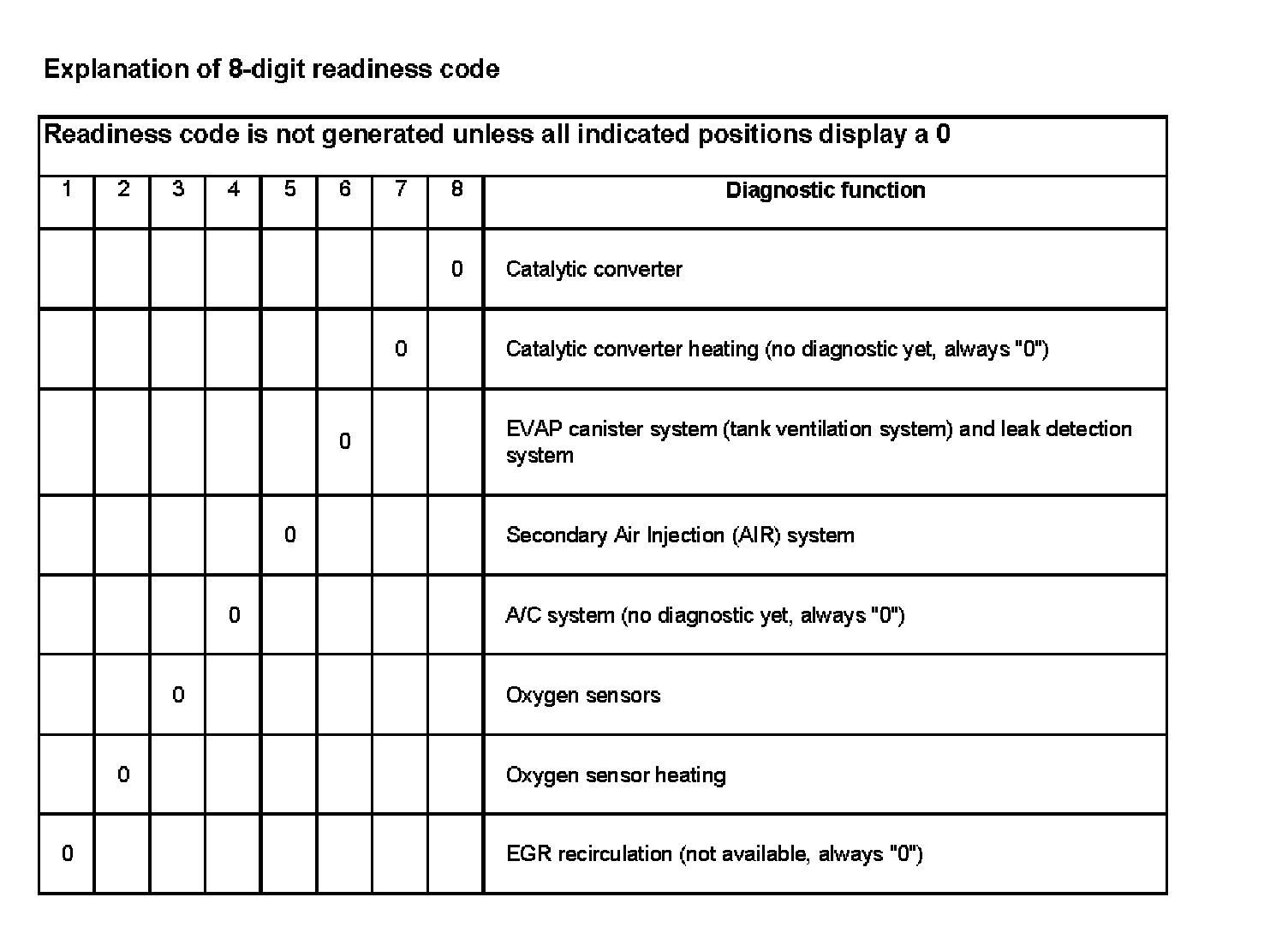 Explanation of 8-digit readiness code