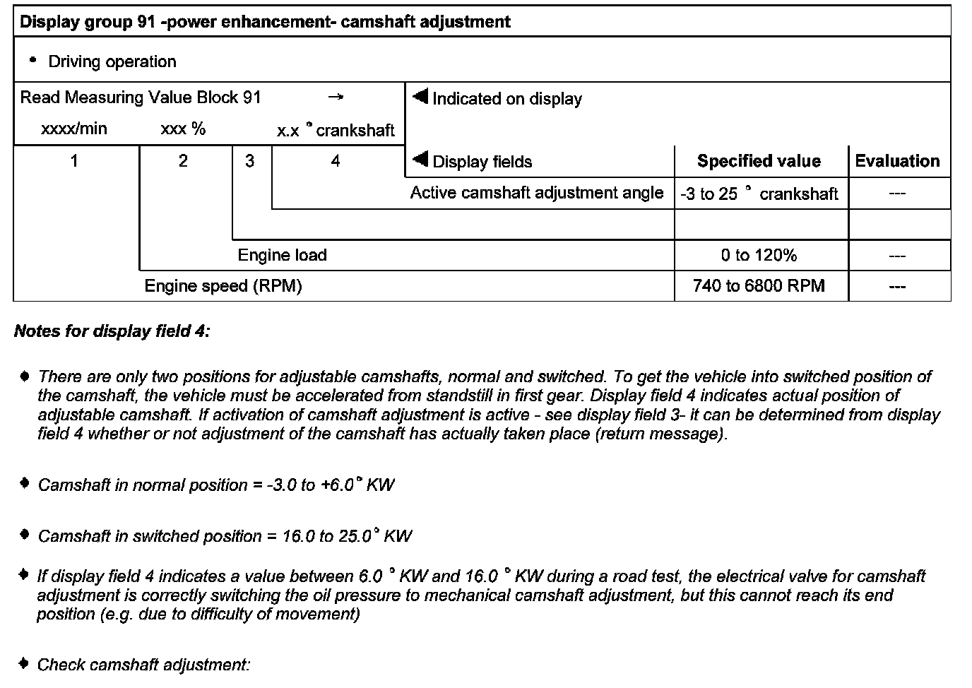 Measuring Value Blocks, Evaluating, Display Groups 90 To 97 -Power Enhancement-