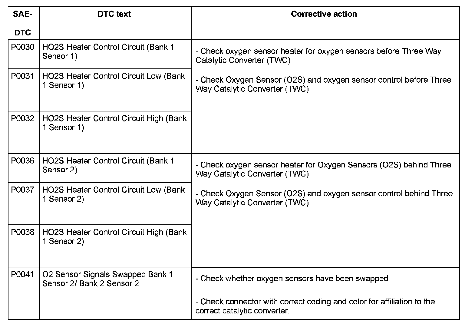 DTC P0030 - P0041: