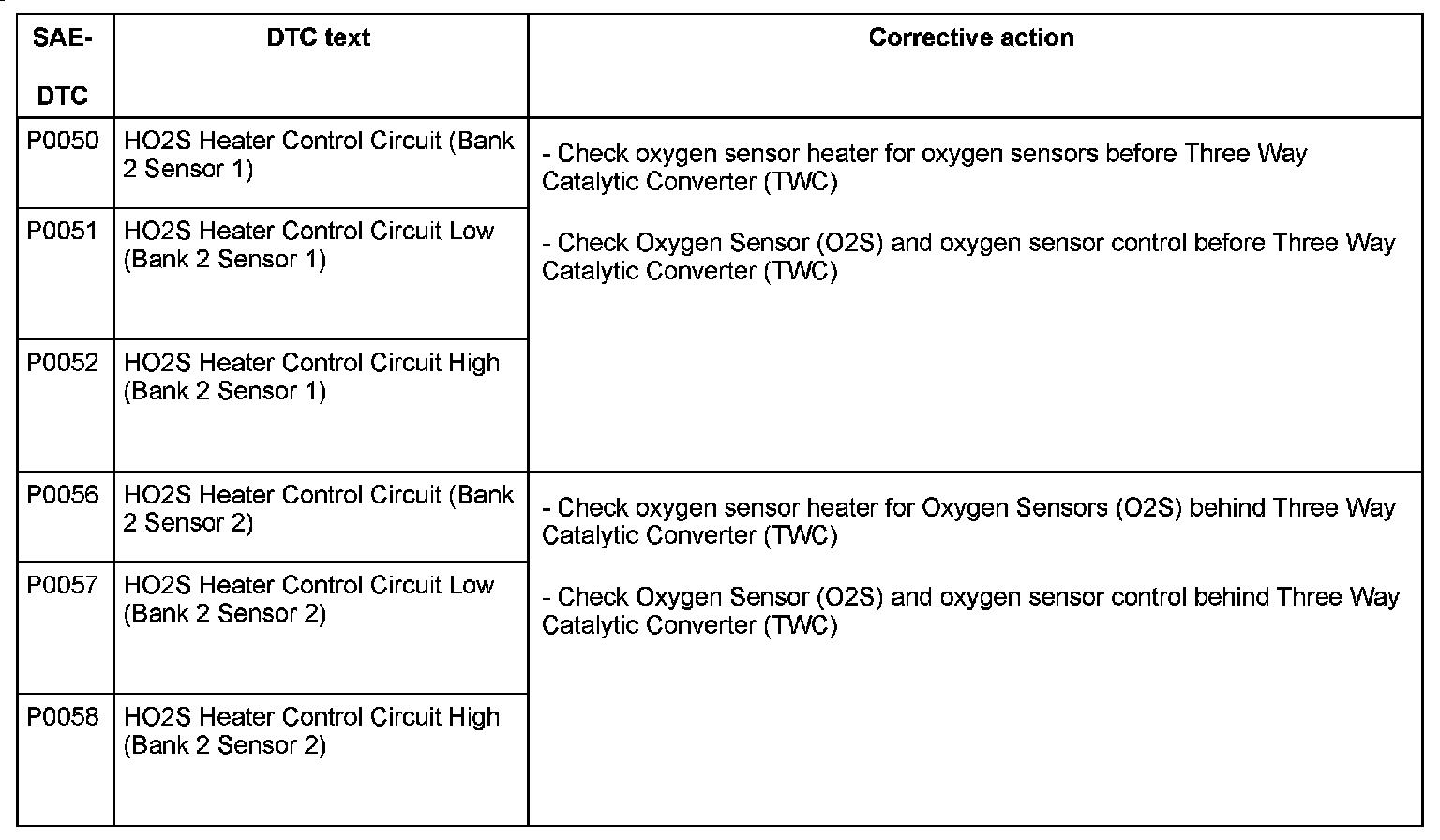 DTC P0050 - P0058: