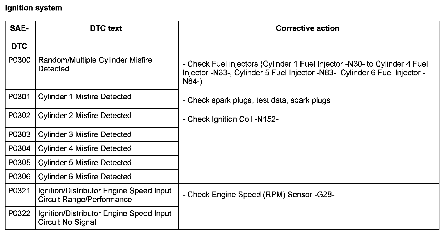 DTC P0303 - P0322: