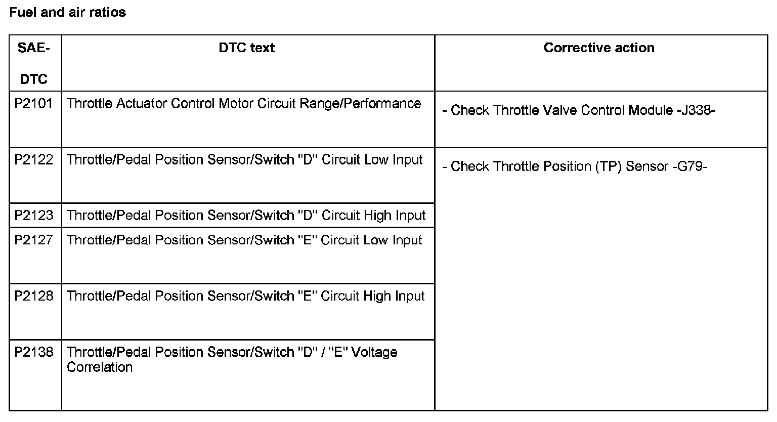 DTC P2101 - P2138: