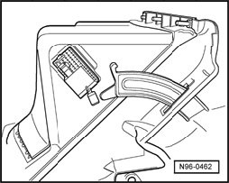 After repair work of glove compartment lamp, a function test of switch must be performed. Lamp must not light up with cover closed.