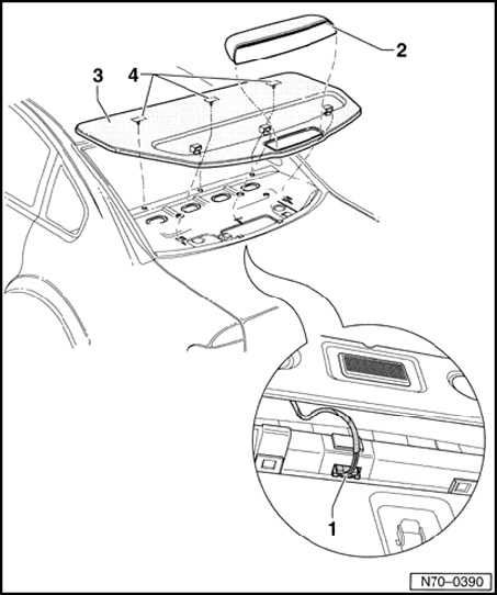 - Unclip rear shelf - 3 - and remove.