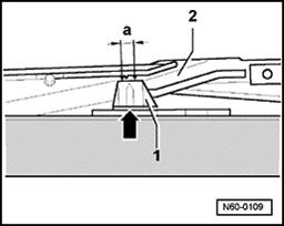 Marking - arrow - on upper part of rear guide - 1 - must be located on both sides between markings dimension - a - at slotted guide rail - 2 -.
