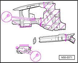 Includes: Longitudinal member, reinforcement and stiffening plate for wheel housing, replacing.