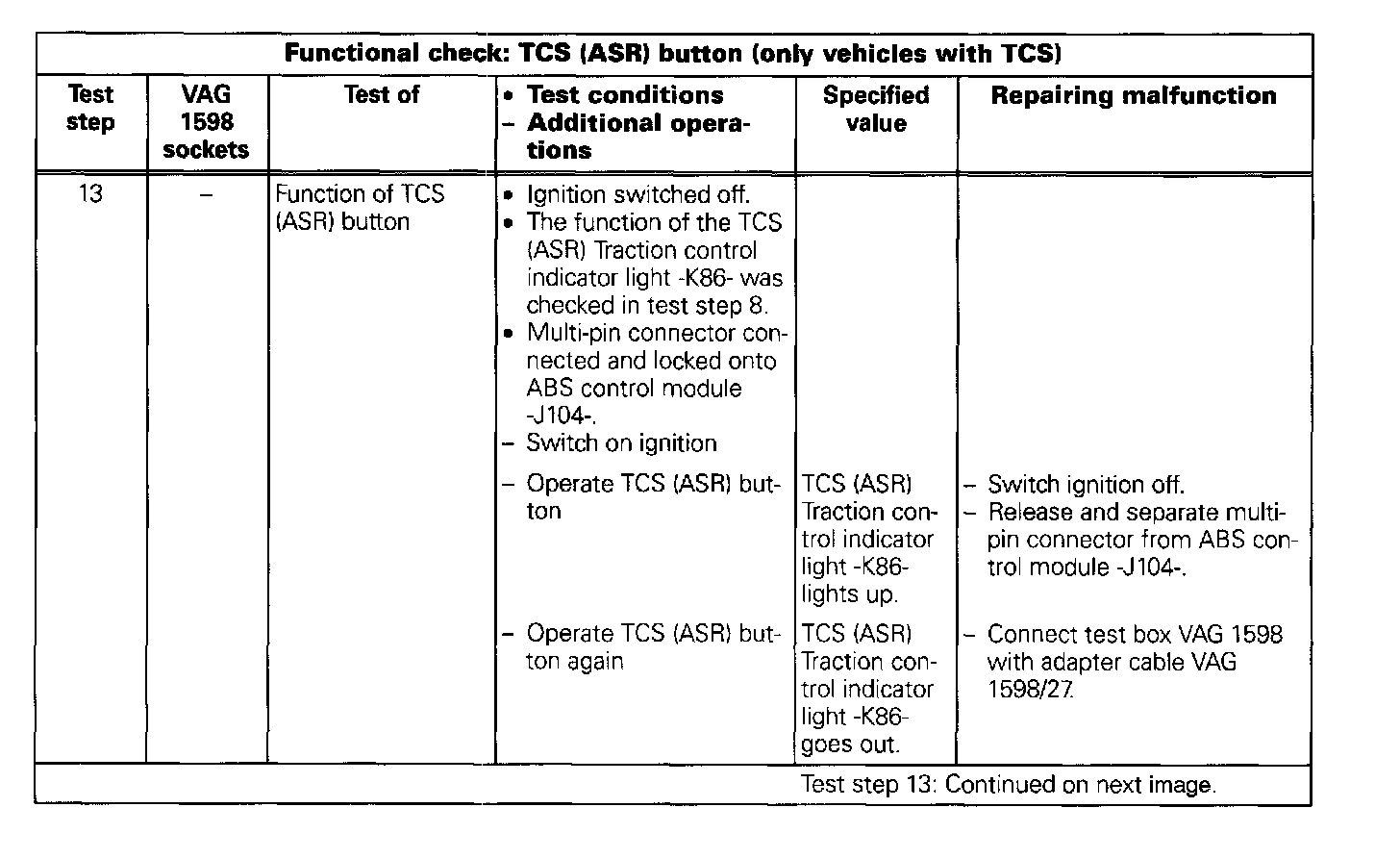 Functional check: TCS (ASR) button (only vehicles with TCS)