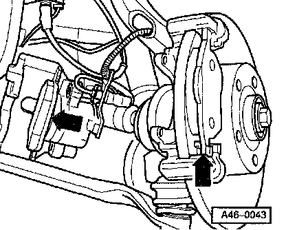 - Remove both guide pins from brake caliper.