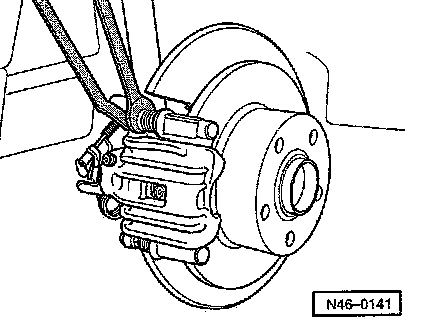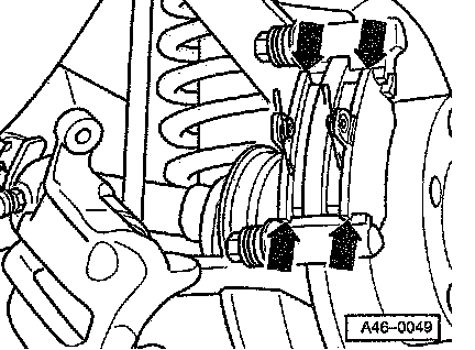 - Remove securing bolts from brake caliper housing, counter-hold on guide pins.