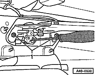 - Press parking brake cable inward with screwdriver and remove parking brake lever.