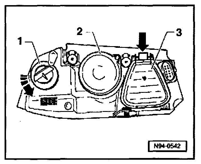 - Turn socket (with connector) -1- counterclockwise -arrow- and pull out of headlight housing.