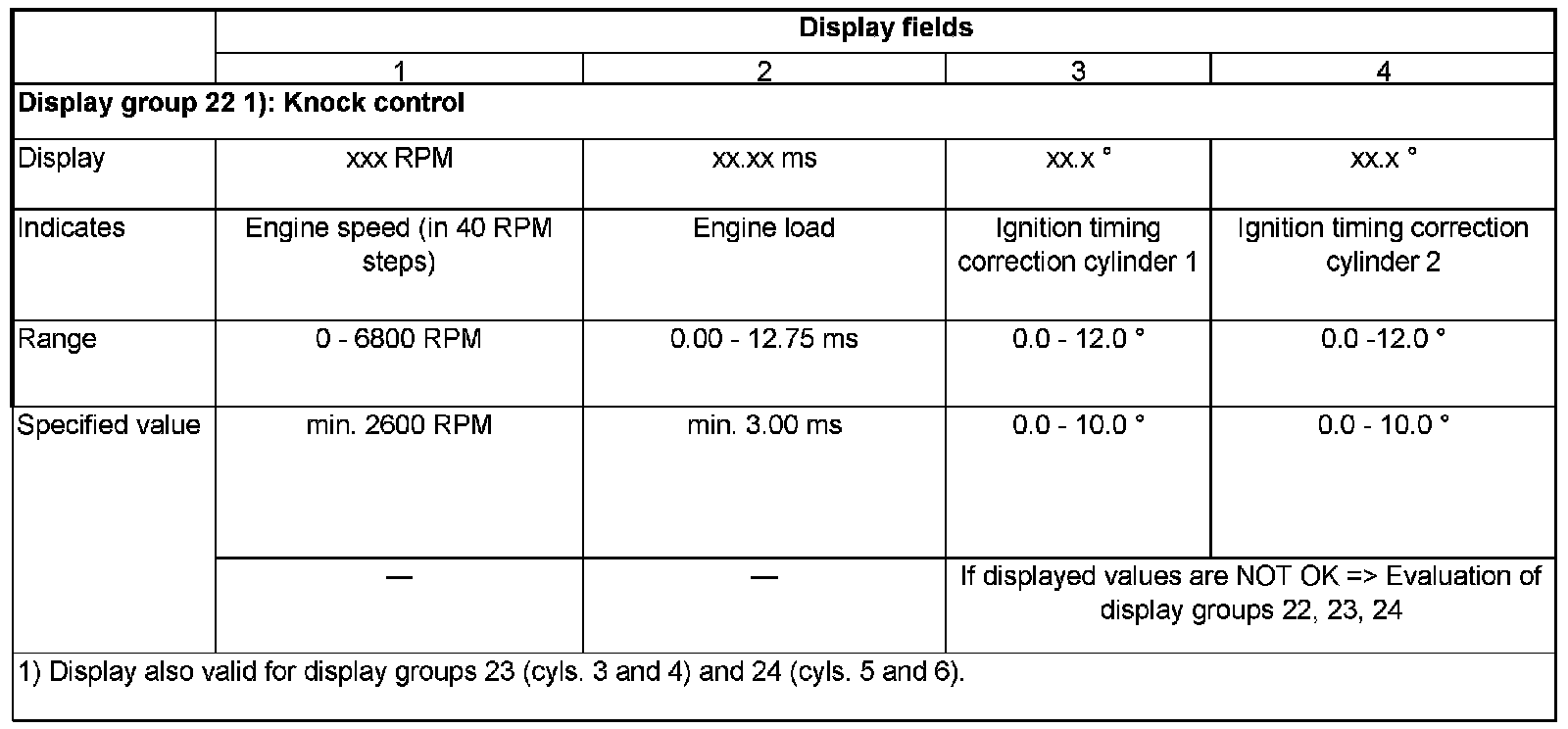 - 022: Display group 22, for cylinders 1 and 2