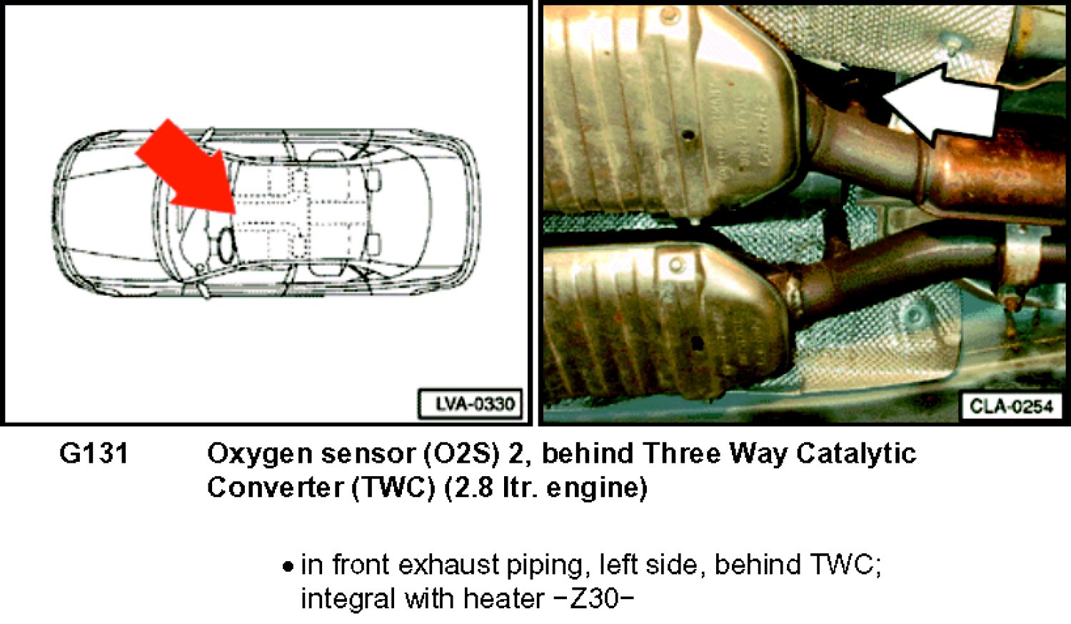 Oxygen Sensor (O2S) 2, Behind Three Way CAT (TWC) (2.8 Liter) [G131]