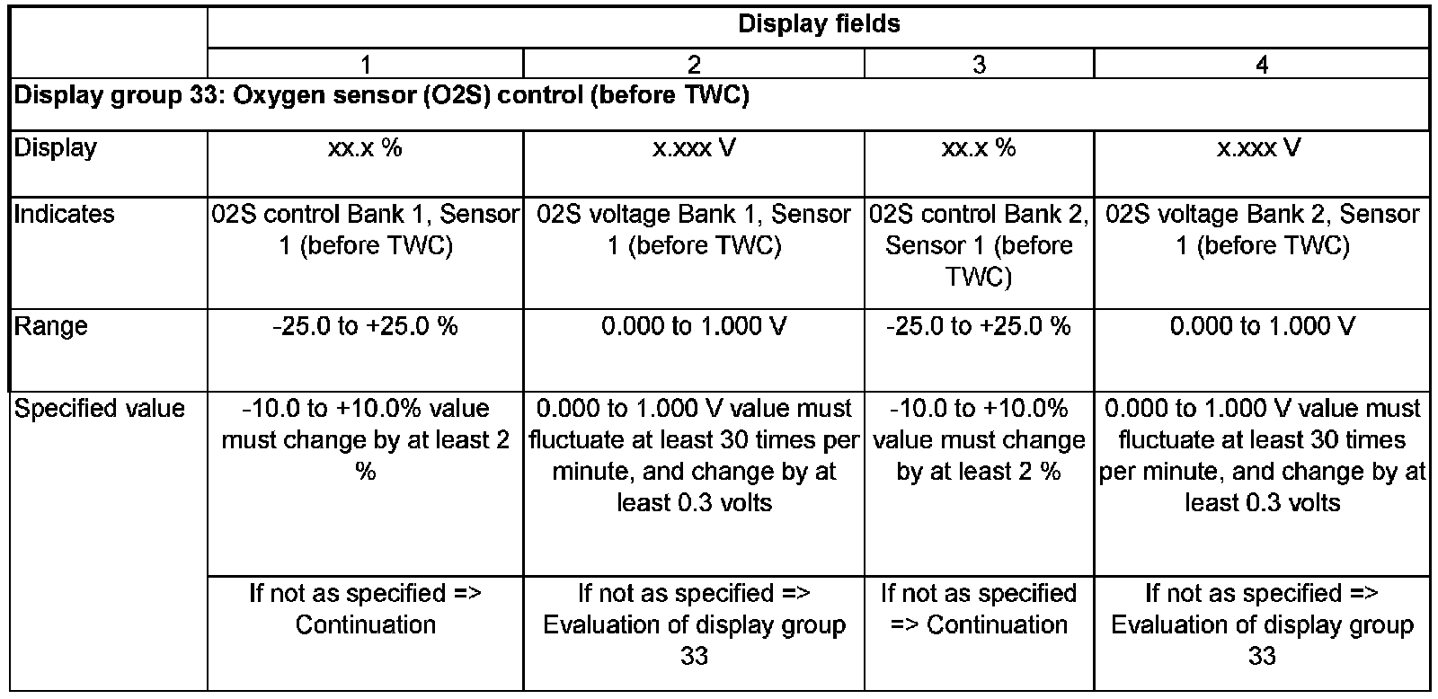 - Check Oxygen Sensor (O2S) control before TWC (display fields 1-4):