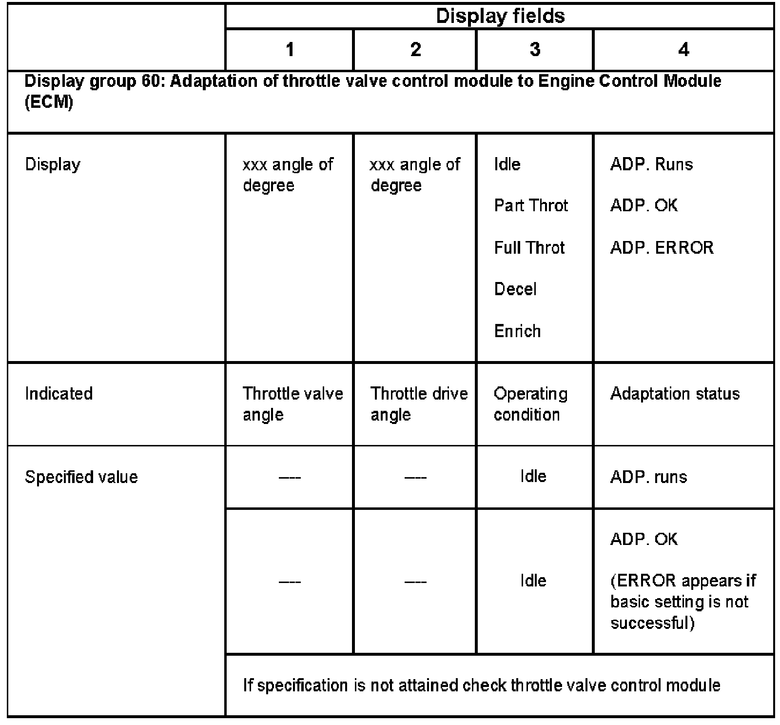 - Throttle valve angle less than 10 lamda angle See VAG1551 scan tool function 08, display group 003, display field 3