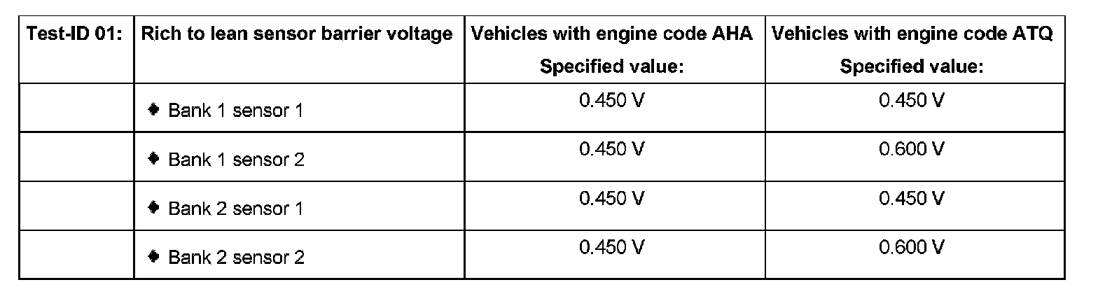 Evaluation test-ID 01: Rich to lean sensor barrier voltage