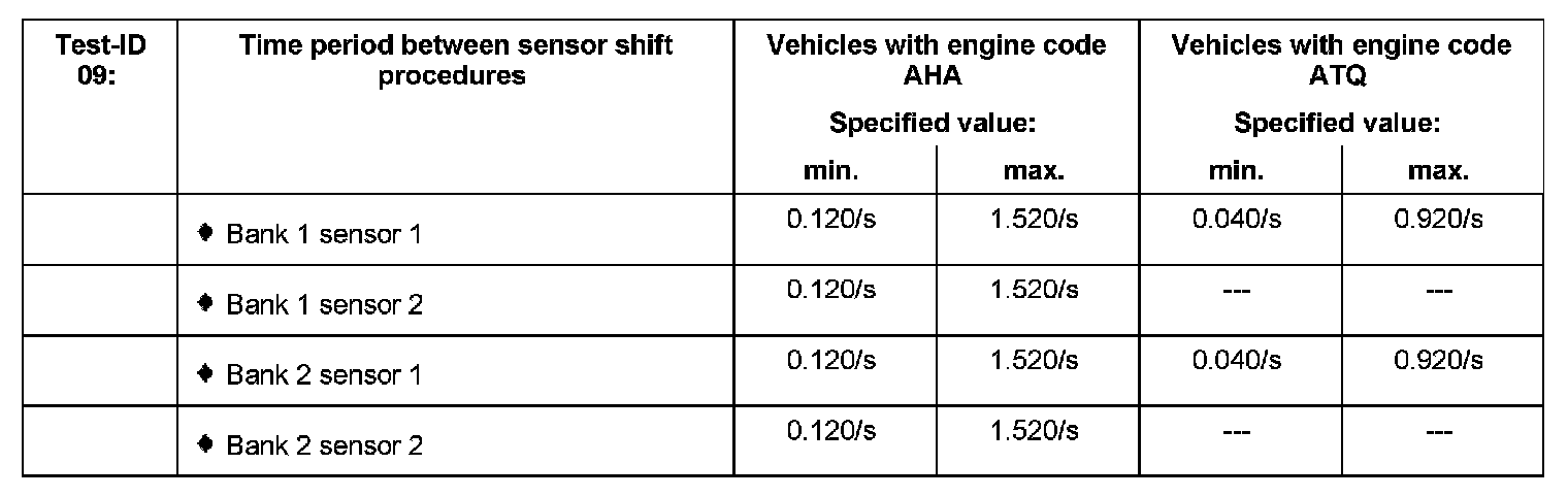 The values of the individual oxygen sensor test results must reach the specified value or must be within the min.- and max.- limits.