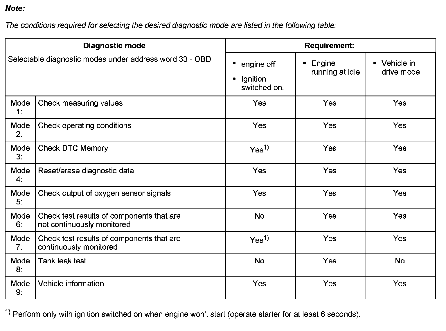 Selectable Diagnostic Modes Under Address Word 33 - OBD: