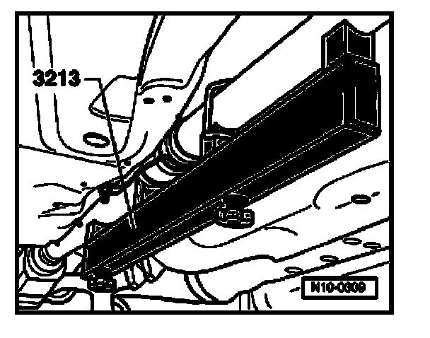 - Fasten intermediate bearing of driveshaft to vehicle floor. Afterward, remove alignment fixture 3213 and tighten bolts using specified torque.