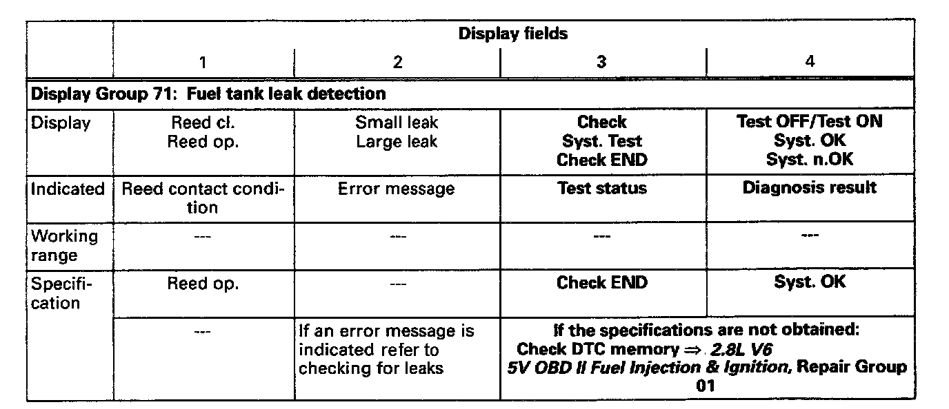 - The test of the EVAP emissions system will be initiated. First of all the function of the Reed contact (in the Leak Detection Pump (LDP) -V144- will be checked by the control module.