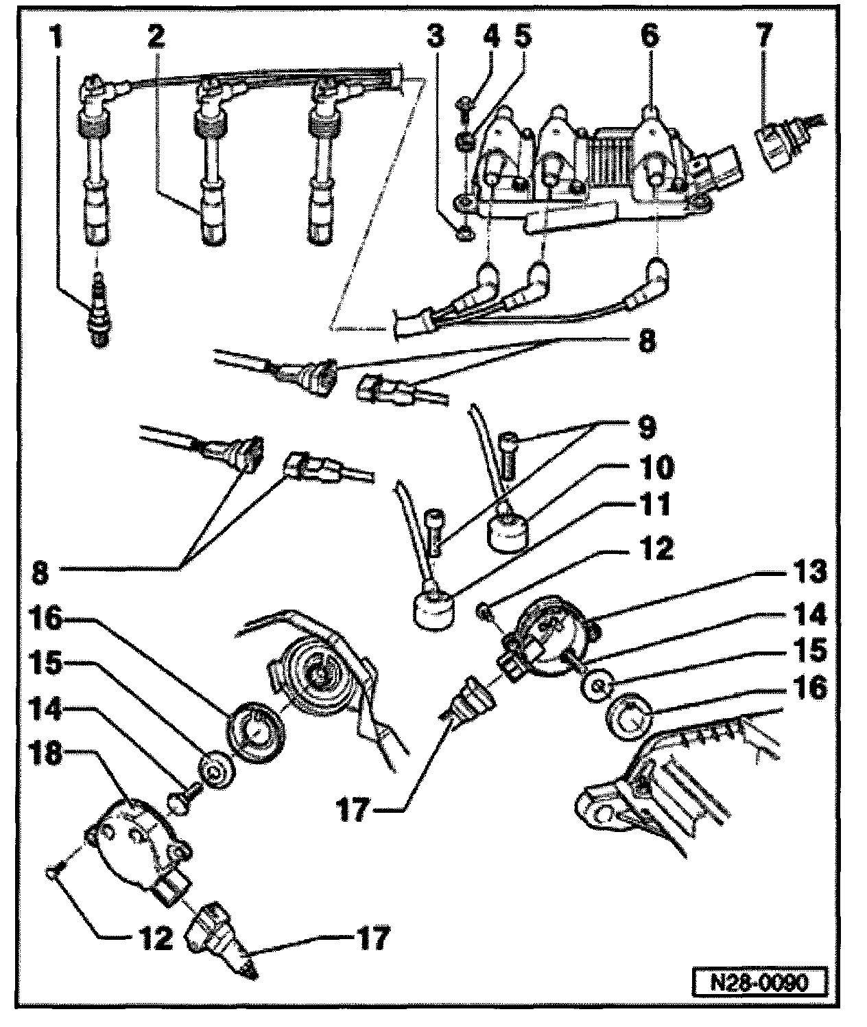 6 - Ignition coils -N-, - N128-, -N158-