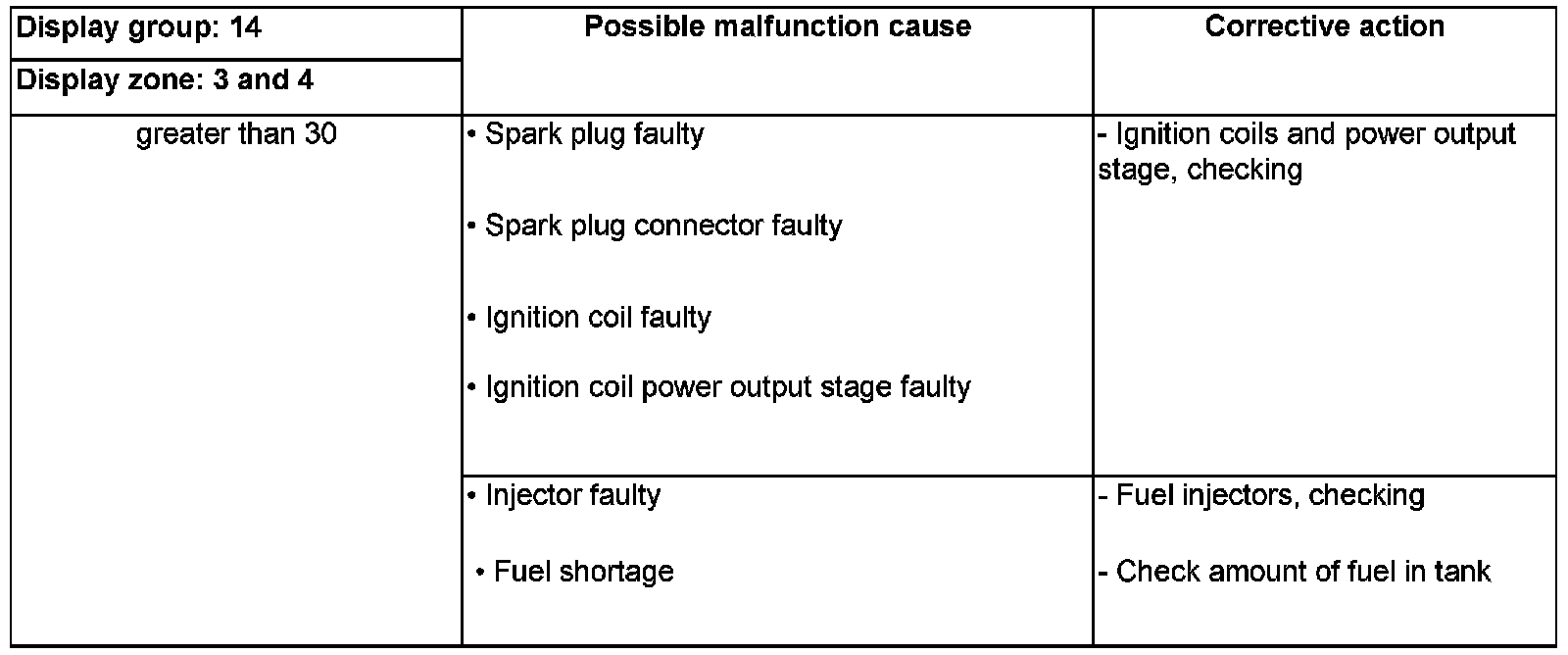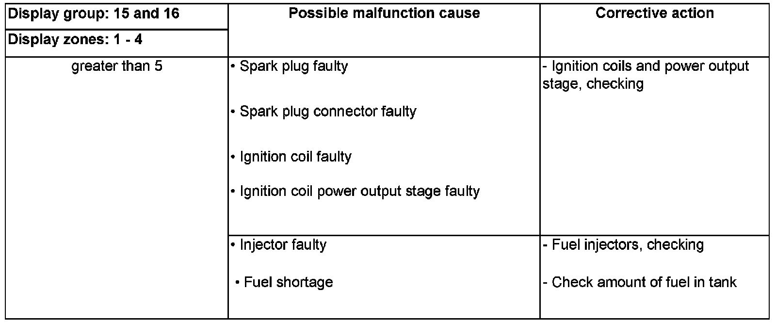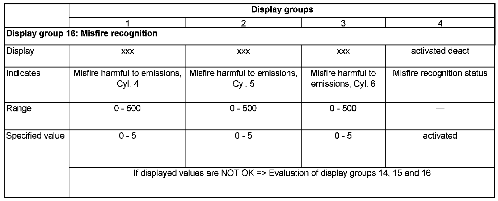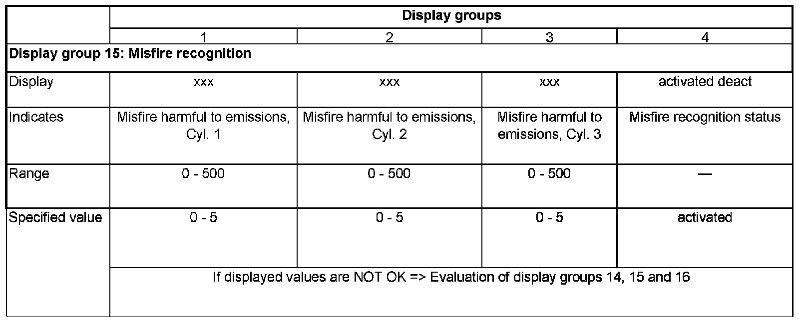 - Compare displayed values with specified values for misfire recognition (display fields 1-4):