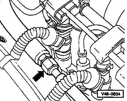- Disconnect line from pressure hose (arrow). Counter-hold on hex of pressure hose when loosening.