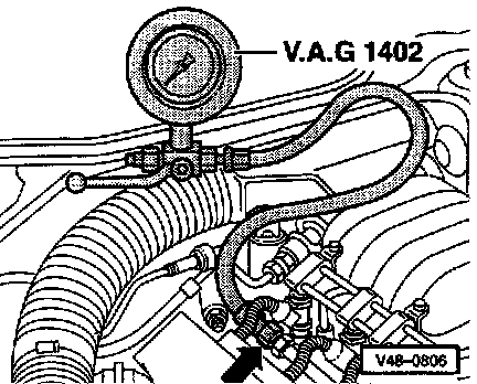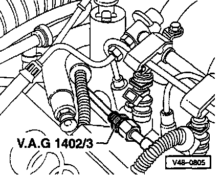 - Thread adapter VAG 1402/3 into line in place of pressure hose.