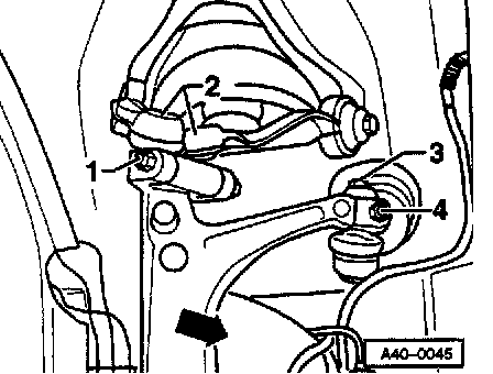 - Loosen bolts -3- and -4- and pull tie rod ball joint off downward.