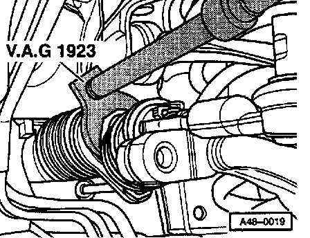 - Unscrew tie rod with VAG 1923 or equivalent.